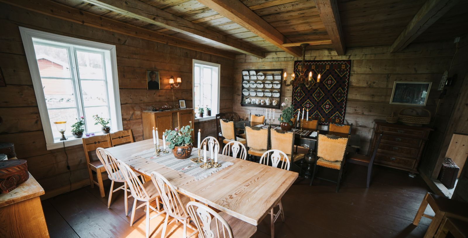 Dining at Flatheim is an experience on its own with most ingredients harvested right in the gardens and farm of the hotel. Eggs are harvested fresh from the chicken coops each morning allowing guests to have an authentic farm-to-table experience. Every evening Flatheim offers its guests a three-course meal served at the farm Storehuset. The dishes always include meat, fish, fresh vegetables, berries, fruits and herbs from the local farmers, anglers, or from the hotel's own garden. Along with dinner, guests will be entertained with storytelling about the farm, family, village, culinary heritage and more. Guests can experience a one-of-a-kind meal along with learning about the history of the hotel and its people.