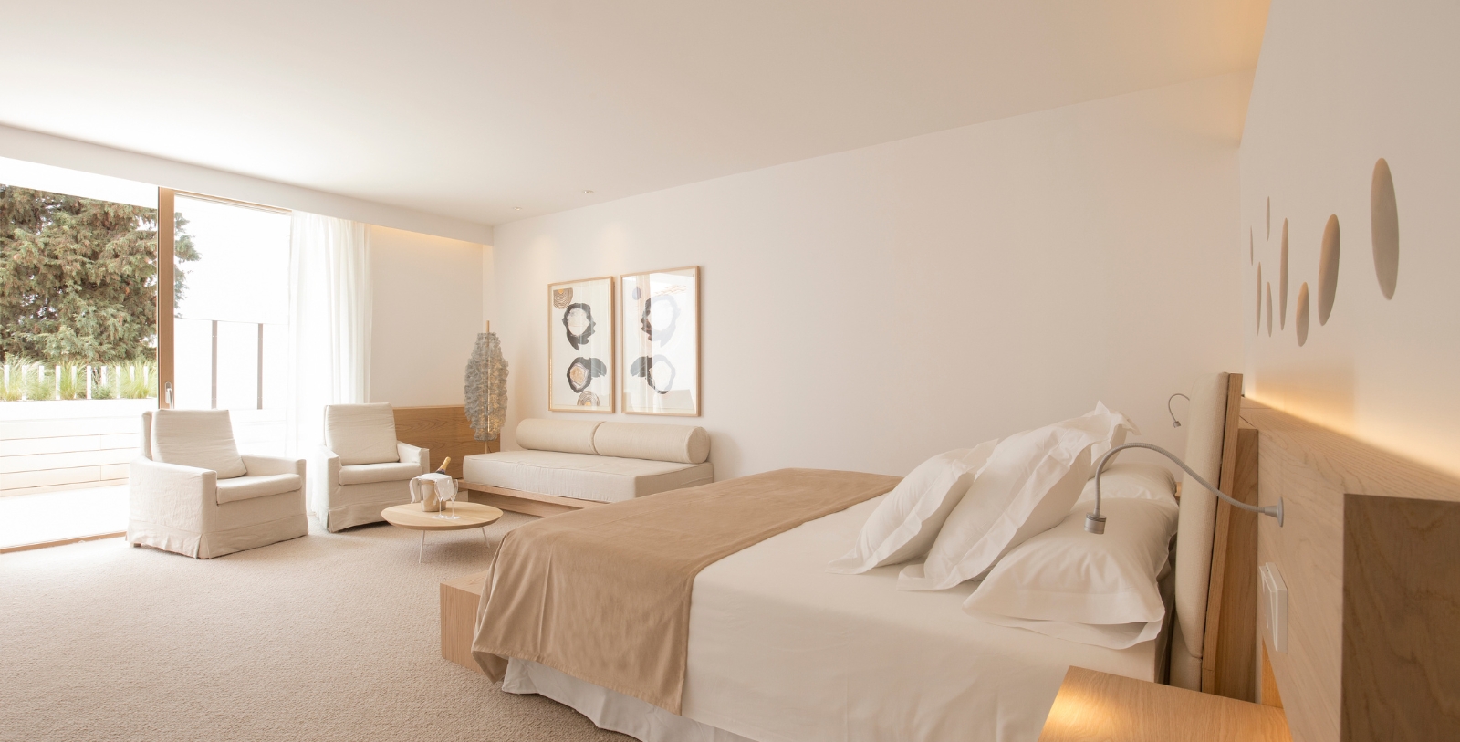 Luxury Suite: The Luxury Suite features a king-size bed or double bed with enhanced amenities. The most divine gem at Hotel Convent de la Missió, the Luxury Suite boasts its own Turkish bath, a private terrace with a daybed and outdoor shower, garden views, and complimentary airport transfers.