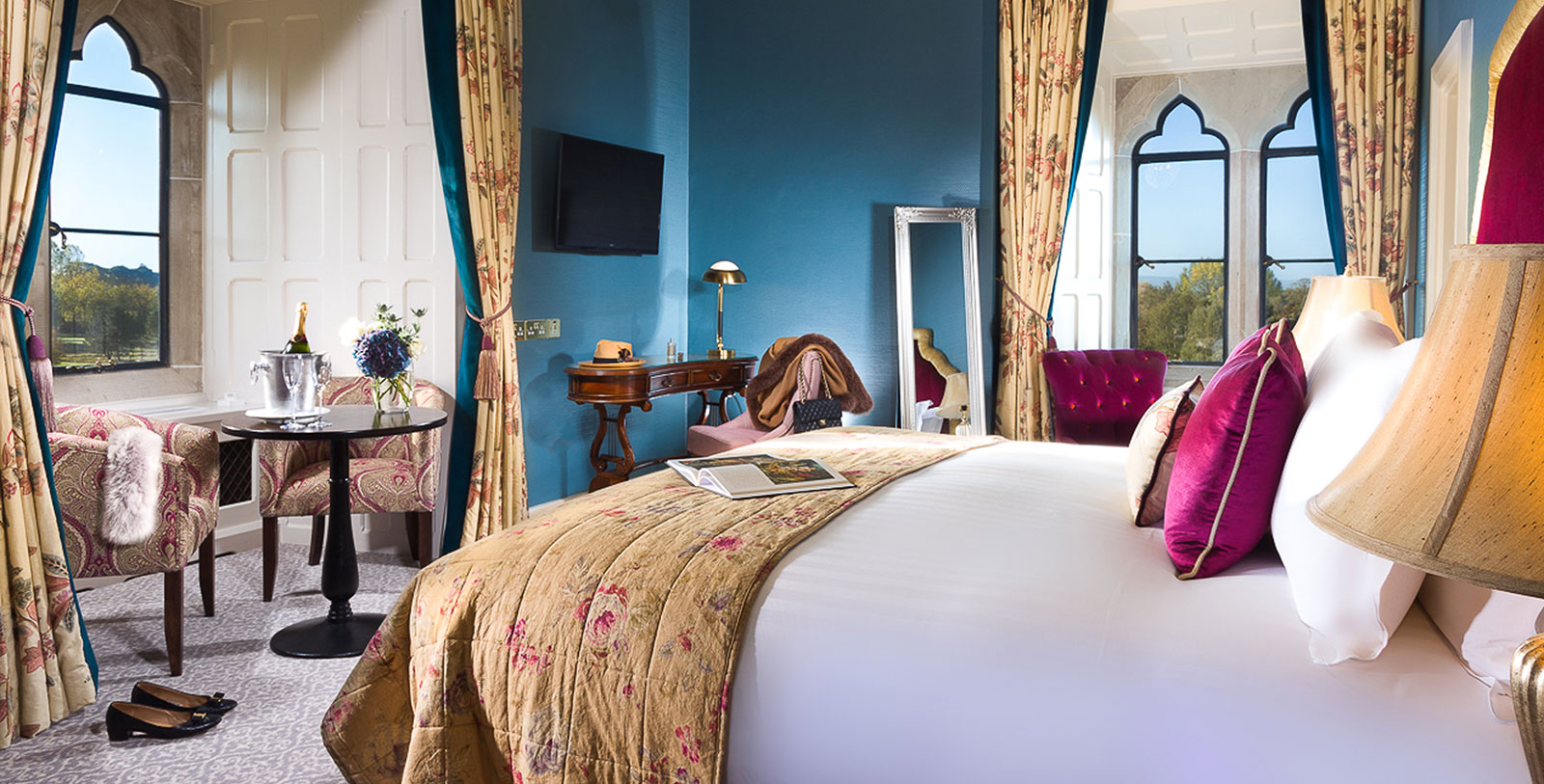 Kilkea Castle's 140 guest accommodations are spread across three distinct styles and locations. If you want a true castle experience, stay in the castle itself in one of the individually decorated castle bedrooms in three categories: Deluxe, Luxury, and Suite. Each of these accommodations feature amenities and designs fit for royalty. Patterned wallpaper, sumptuous carpets and drapes, ultra-soft bedding, beautiful bathrooms with soaking tubs and custom tiling, and handmade Soap Company luxury bathroom amenities contribute to an overall feeling of receiving the royal treatment.