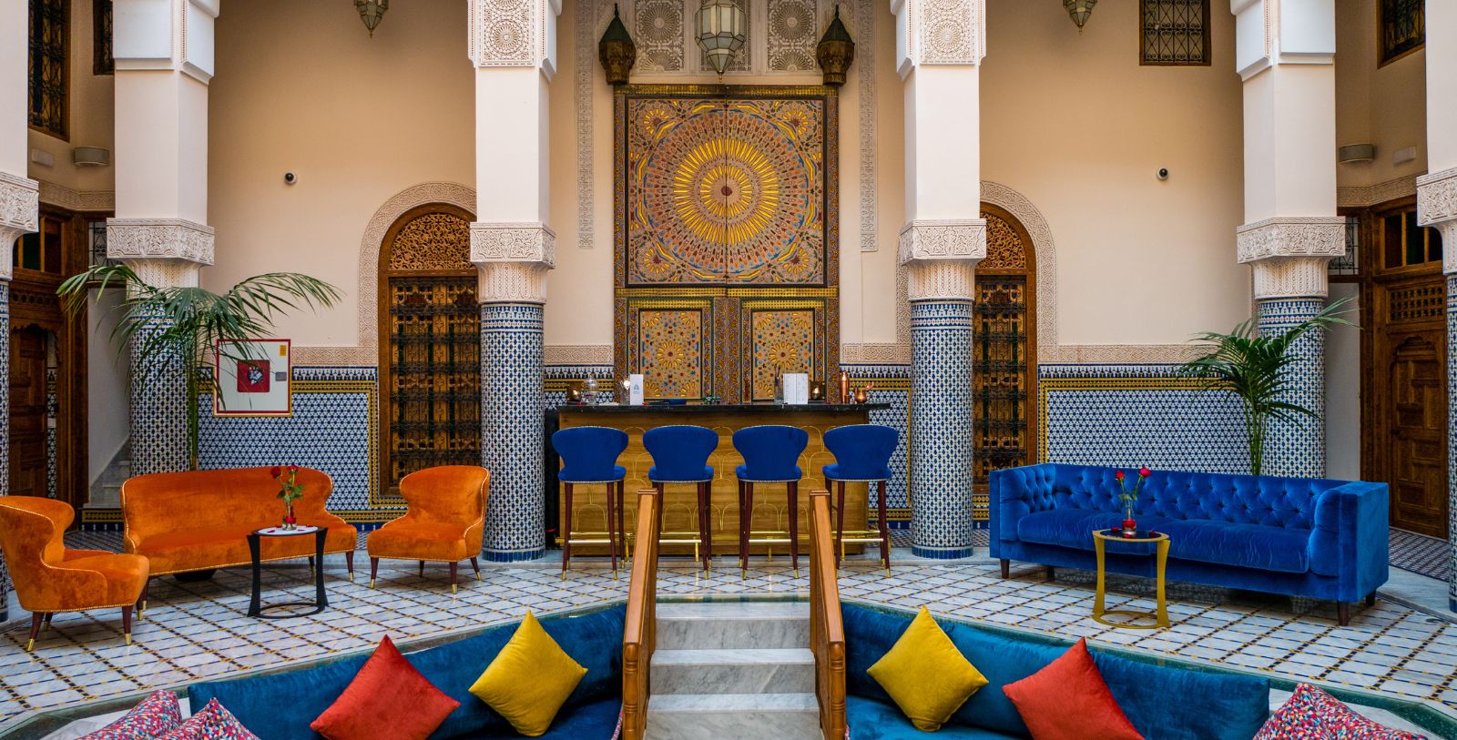 Riad El Amine Fès offers a change to the typical meeting destination. Organize events, business meetings, or conferences in the grandeur of the palace with accommodation for up to 80 people. Everything from delectable menus for dining to picking talented photographers for the occasion is organized by the hotel staff, making it seamless for guests. Birthday parties, anniversaries, and weddings are all accommodated at the hotel for up to 80 people.