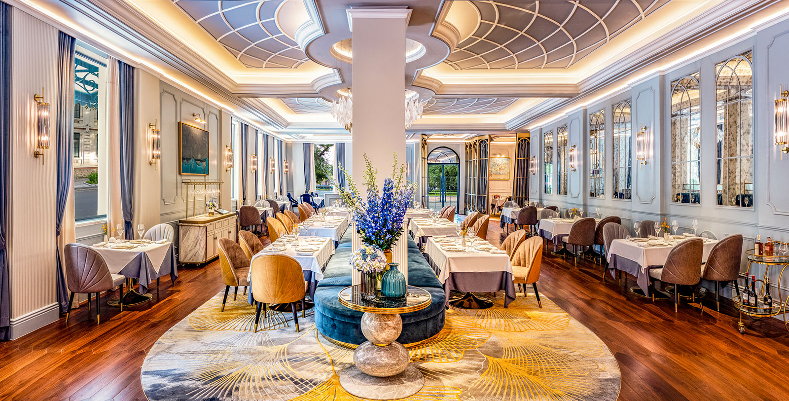 With an elegant and sophisticated new design, alongside renowned French gastronomy and a wide selection of wines, the signature restaurant at Metropole Hanoi ties together the hotel’s 120-year-old storied past with a contemporary new look that manages to meld the opulent, the classical and the modern in a single scheme that’s long on white, gold and heathery blue-grays. The menu at Le Beaulieu continues to spotlight modern French gastronomy with nods to classical French flavors and an emphasis on seasonality and superior ingredients. The restaurant’s inventive approach both to cuisine and service is enhanced by a chef-driven perspective. While there are some traditional French touches, the presentation is stylish, with well-balanced portions and fresh produce from France, Vietnam, and elsewhere. Le Beaulieu boasts one of the most extensive wine collections in Hanoi, featuring more than 600 references and 1,600 bottles, including over 100 Grand Cru Classés and wines from leading chateaux, vintners, and wineries from France and around the world. Service staff at Le Beaulieu draw on their wine knowledge and experience to offer pairing recommendations.