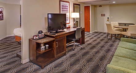 Guests can relax in Parlor Rooms and sink into the Murphy bed, enjoy meals at the dining table and chairs, or watch on-demand movies on the 37-inch TV from the sofa sleeper. Equipped with a large work area with ergonomic chair, these accommodations are perfect for the business minded guest.