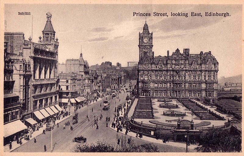 One of Edinburgh’s most popular destinations today, Princes Street has been a major thoroughfare in the city since its creation in the early 18th century. Princes Street specifically traverses the Edinburgh’s historic neighborhood called, “New Town,” which UNESCO decreed a World Heritage Site in 1995. New Town itself dates to 1767, when the Edinburgh City Council approved plans to create a unique suburban district that would attract more affluent individuals to the area. To make their vision a reality, the council members commissioned architect James Craig for the project. Craig’s plan was audacious: a grid five-streets deep seven-street wide that featured grand square at each end of its central axis. Every street was named after a member of the British Royal Family in honor of the recent Act of Union that had finally unified Scotland and England in 1707. George Street would specifically operate as the area’s main traffic artery, which Craig had named in honor of King George I of Great Britain. Two gorgeous churches were to serve as the anchors for the scheme, with St. George Church situated at the western end and St. Andrew’s located to the east. Craig intended for his new neighborhood it only feature residential structures, as the Edinburgh City Council intended for the nearby “Old Town” to exclusively act as the local center of commerce.