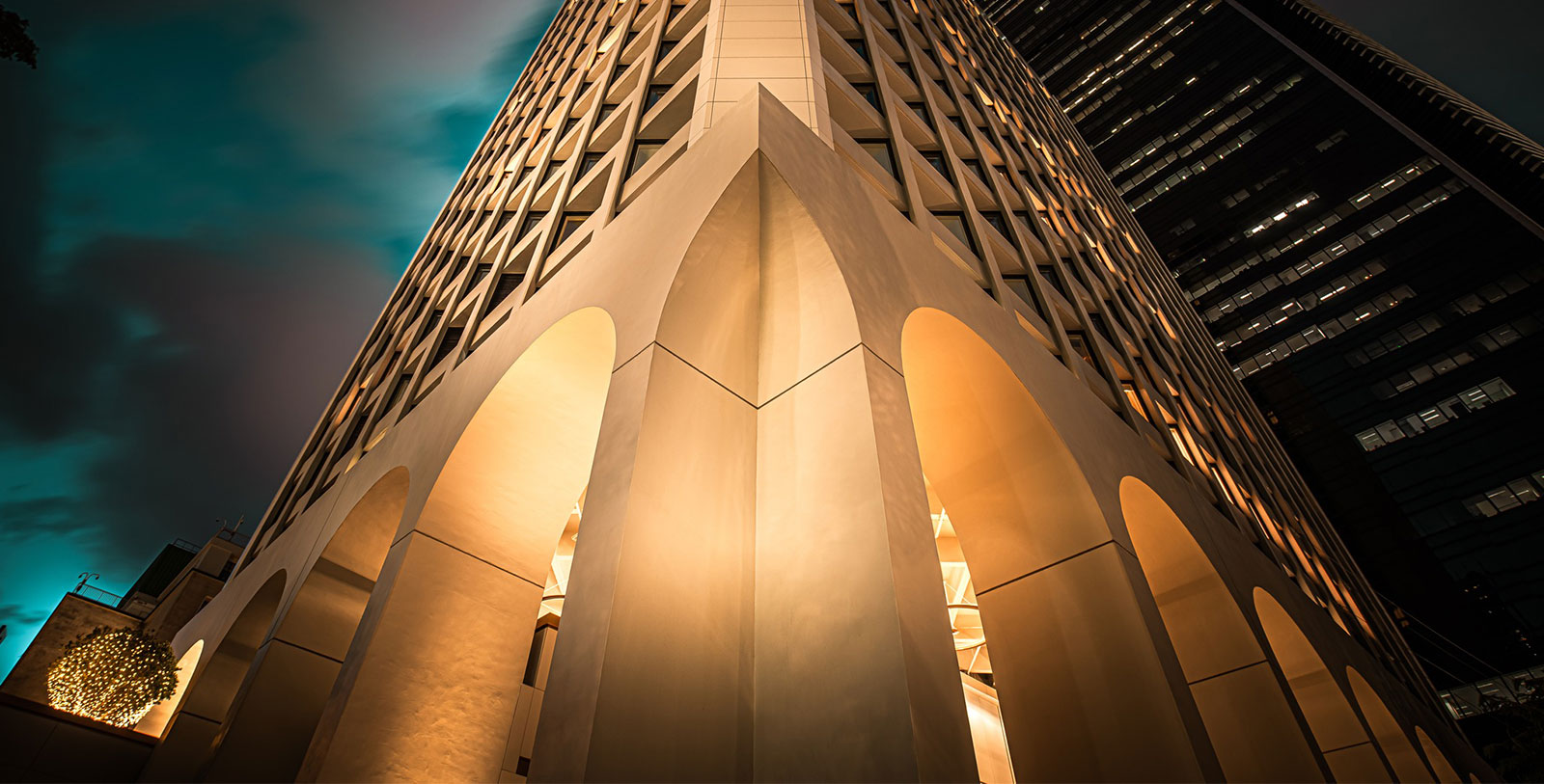 Discover the innovative architectural design of The Murray Hong Kong. Towering over Hong Kong Park, the hotel’s building is an iconic modernist landmark. Its design, with distinctive ground-level arches and deeply recessed, angled windows that prevent the entry of direct sunlight and thus enhance temperature control, is an example of sustainable architecture way ahead of its time—and one of the reasons why the building was granted heritage status by the government.