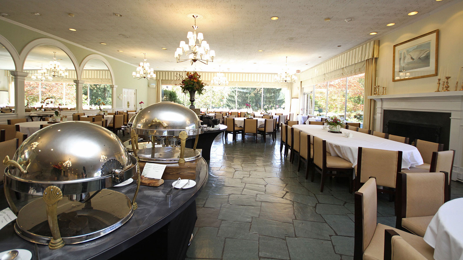 Event-planners and culinary staff work closely together to present expertly-prepared meals for large groups, conventions, and meetings. Overlooking the formal gardens and Lake Stanley, guests are treated to scenic views with their scrumptious meal.