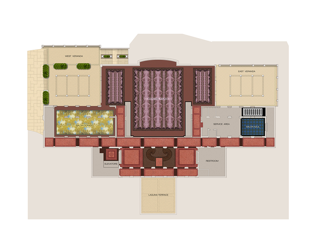 | Salon Azul | 900 | 28' x 34' | 13' | 24 | 40 | 40 | 50 | 18 | ||
