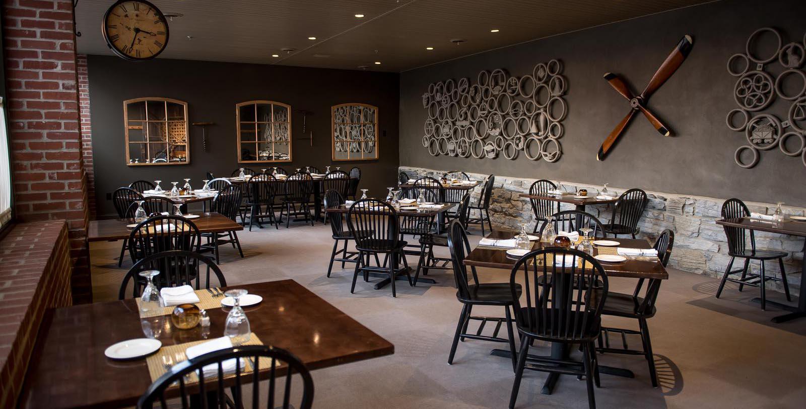 At this Cork Factory Hotel restaurant, guests can dine in plush leather banquettes alongside restored brick and stone walls or lounge in the rustic bar area. Outside dining will gather around the signature smoke stack.