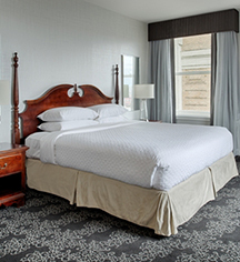 These suites are located on the top two floors of the Embassy Suites by Hilton Portland Downtown. Guests are treated to spectacular views of the downtown skyline and plenty of natural light. In 600 sq ft of living space, the suite features a separated bedroom with two queen-size beds and luxurious amenities.