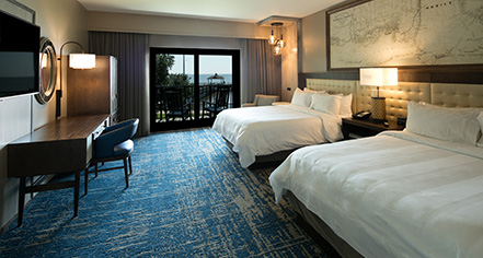 All guestrooms feature either one king-size or two queen-size beds and are elegantly and comfortable furnished. They also come standard with high-speed Internet access, 32” to 37” HD LCD flat-screen televisions, Revive® bedding, coffee makers, and room service.