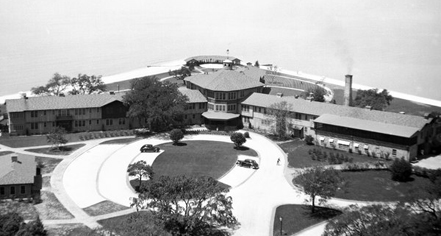 Everyone who lived on the property at this time followed strict “Navy style” rules. All floors were referred to as decks, for example, and men kept time by a ship’s bell. Courses taught on the property included swimming, signaling, ship orientation, sail making, amphibious operations, and more. In total, 5,000 Army Air Force servicemen were trained at the Grand Hotel.
