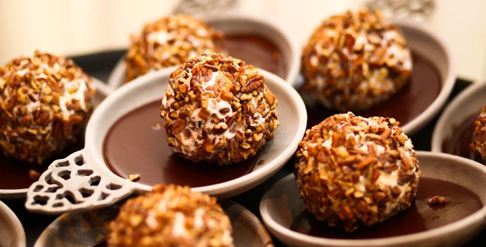 Grand Hotel Pecan Balls with Fudge Sauce Recipe