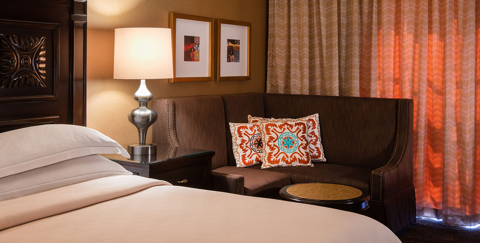 Designed in a splendid Southwestern style, Guestrooms feature a soothing neutral backdrop complemented with a vibrant New Mexico color palette. Available in a king-size or two double bed layout, all guestrooms include a seating area for extra comfort. Guests can book a Deluxe Guestroom for beautiful views of the swimming pool or a Premium Guestroom for direct access to the pool area.