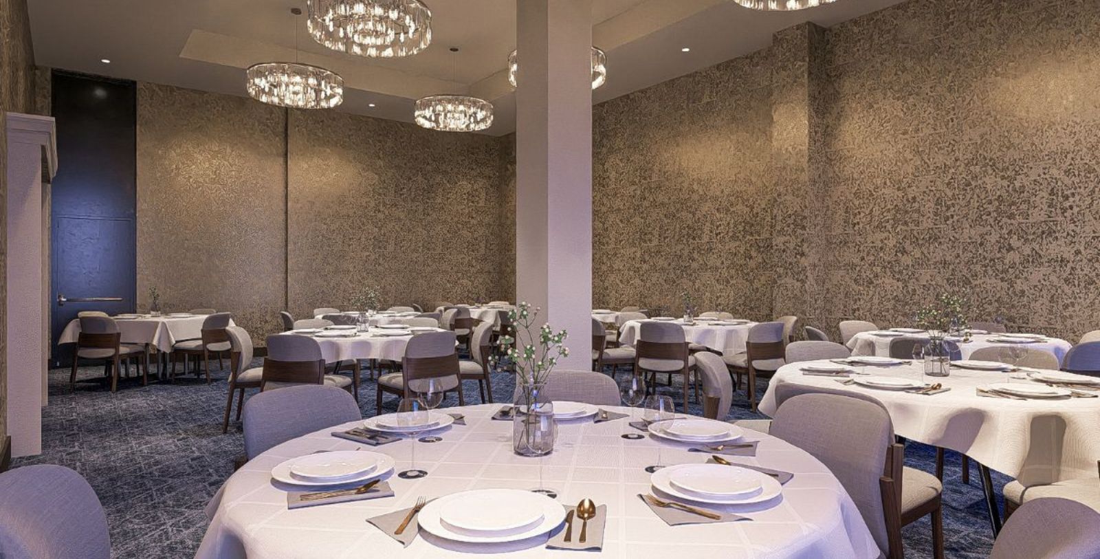 Cockade Room: 60 standing | 48 seated (Banquet room). Blending the old with the new, this reception hall features lofty ceilings and stunning crystal chandeliers. The Cockade Room is the ideal backdrop for business meetings, celebratory dinners, and weddings.