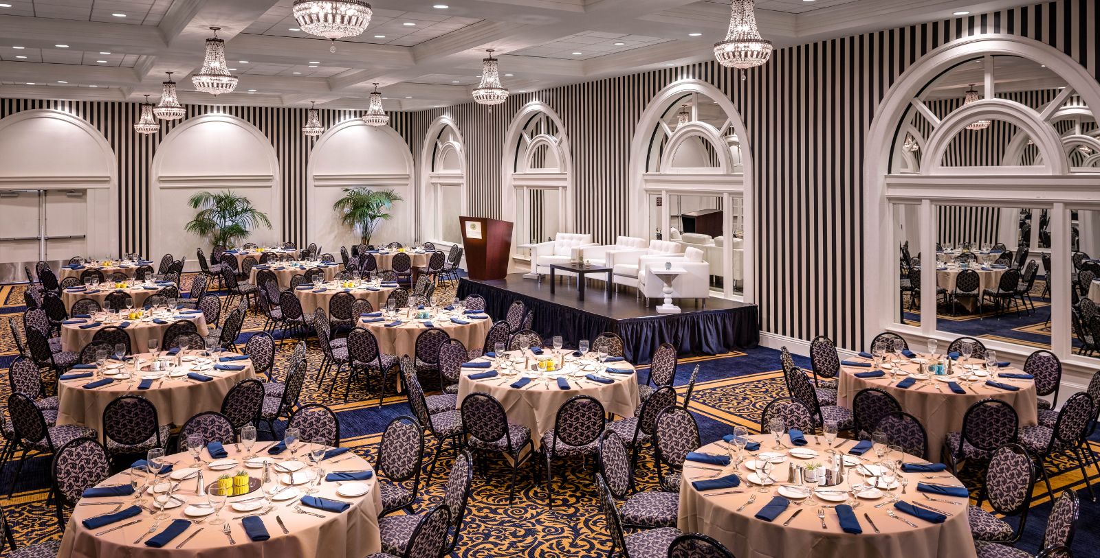 Crystal Ballroom: This ballroom is 2,788 square feet and connects to additional breakout spaces that can fit up to 320 attendees.
