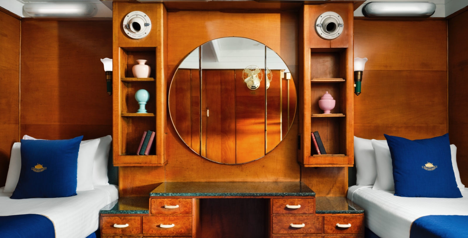 The Queen Mary’s luxe staterooms and suites combine modern amenities and the timeless Art Deco character of the ship’s transatlantic voyages. Guests can relax in comfortable, bright spaces with authentic wood paneling and original 1930s artwork or enjoy views of the harbor from their own personal portholes. A historic preservation fee attached to all rooms and suites allows guests to contribute directly to the hotel’s renovation, offers complimentary historic souvenirs and museum access. Pet friendly, connecting and accessible rooms are available.
