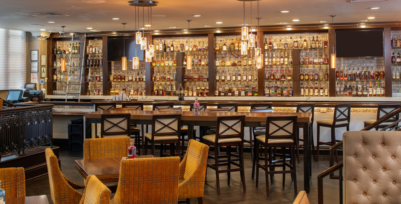 Even though the room has since been restored to its present elegance, elements of its past remain visible. The oak-paneled walls and columns still retain their stately presence, while the subtle traces of the old billiard room—such as remnants of the cue racks on the south wall—invite guests to imagine a bygone era of gentlemanly games and private indulgence.
