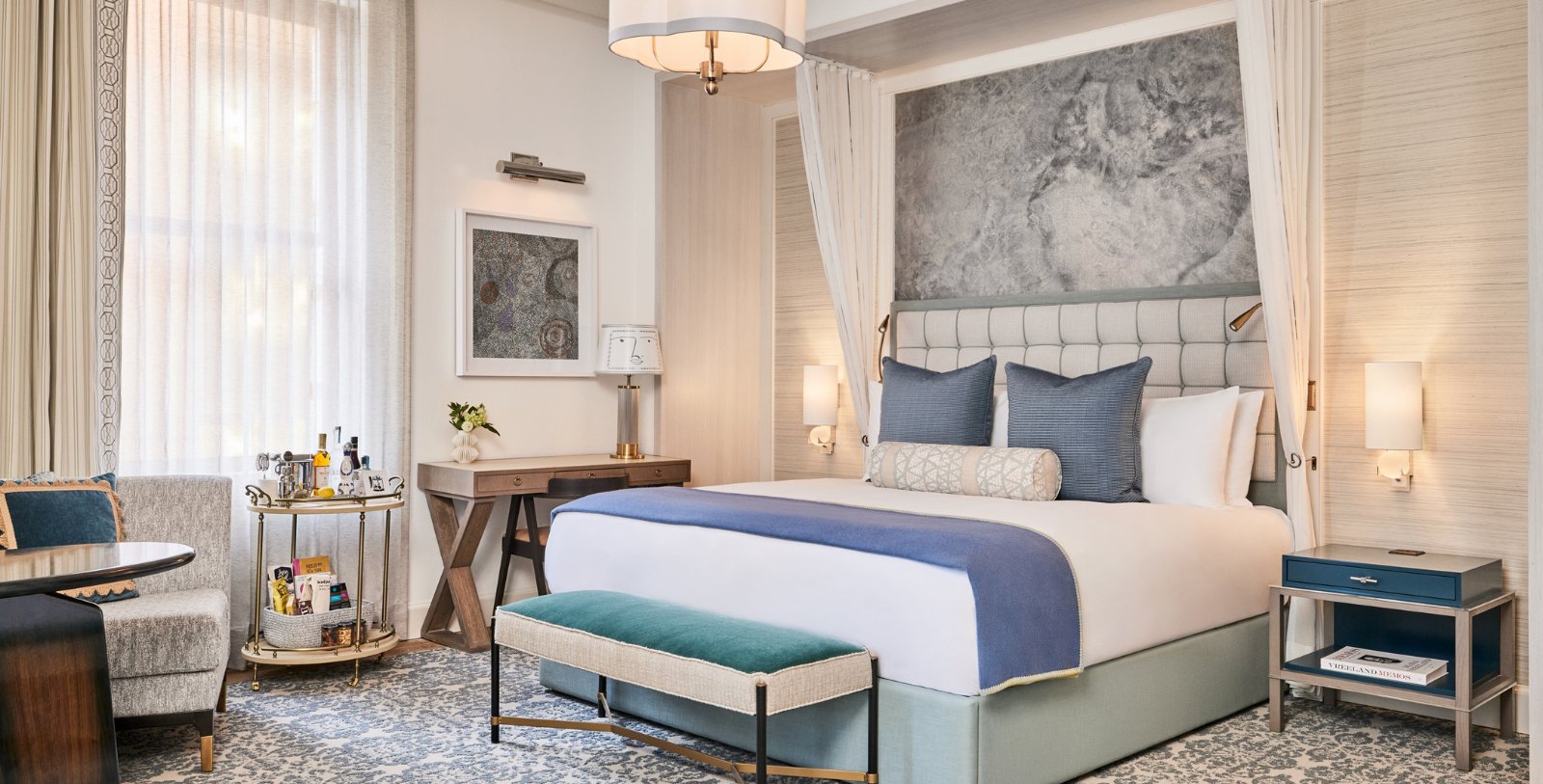 The 300-square-foot Wall Street King guestrooms are comfortable, intimate, and provide everything for the modern traveler. With interiors inspired by the light, yet saturated palettes of classic New York residences, the Wall Street King guestrooms evoke a sense of calm and warmth intended to make guests feel at home. (ADA options available.)