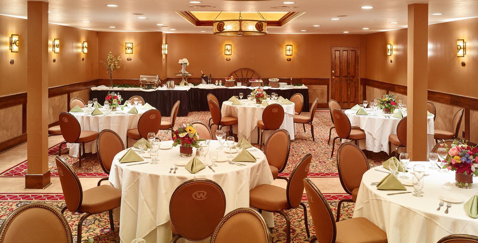 The Jackson Room is the hotel’s largest space perfect for seated receptions of up to 100 guests. The room is bright, inviting, and adorned with western chandeliers and handmade sconces.