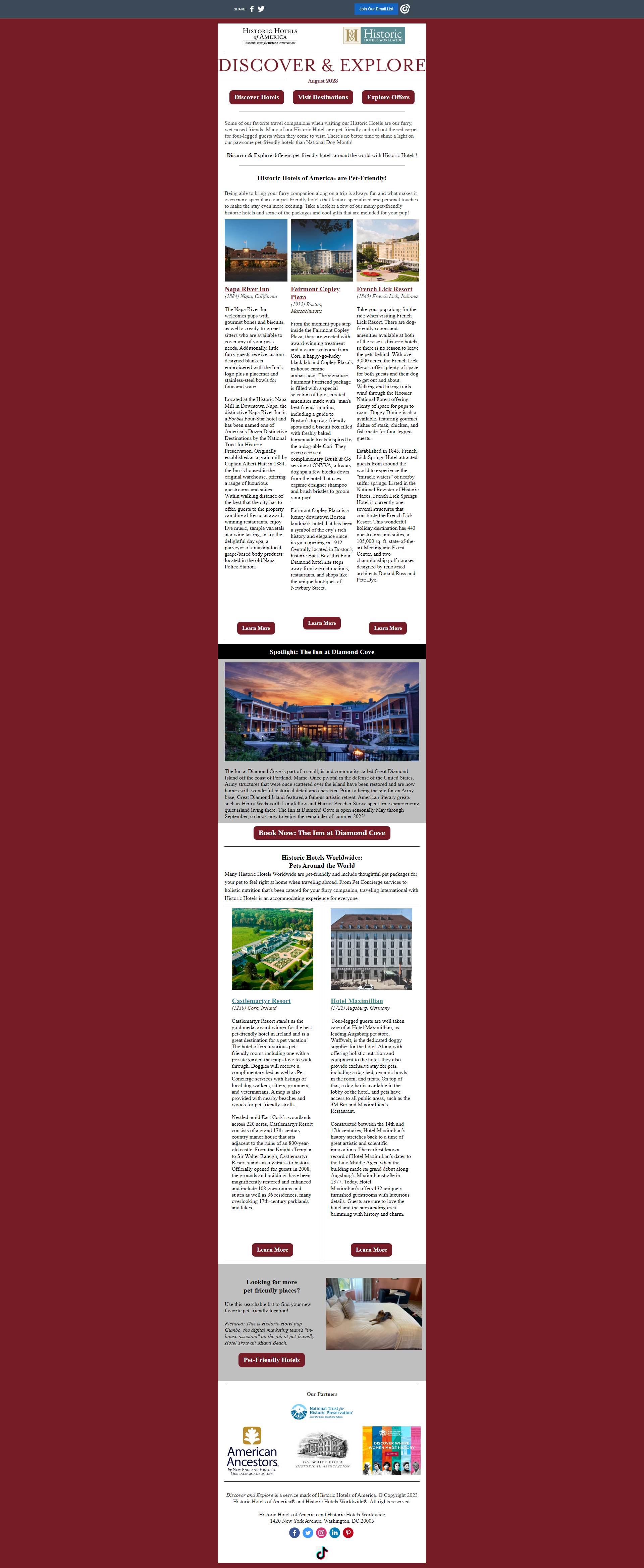 August 2023: Don't Leave Fido Behind! Pet Friendly Historic Hotels
